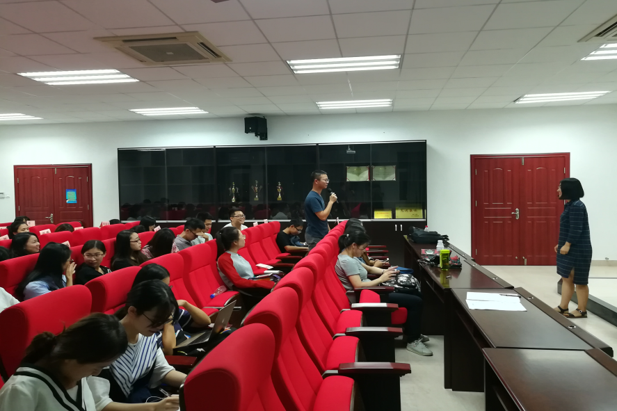 沈永辉同学向同学们介绍关桥中学学生的学习生活情况