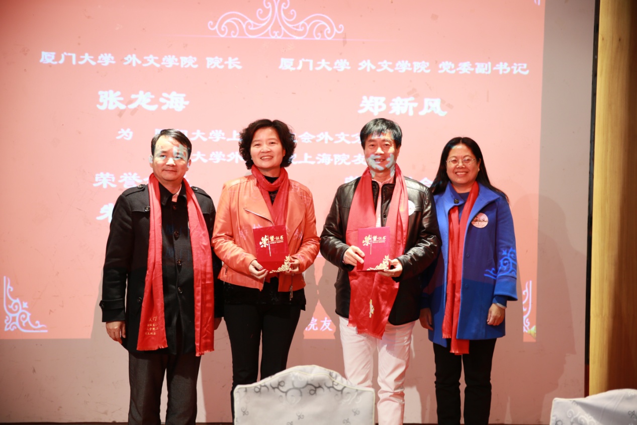 内蒙古校友会、贵州校友会向厦门大学上海校友会外文分会暨厦门大学外文学院上海院友会发去贺信,贵州校友会会长赵浣淳在会上向外文学院上海院友会赠送精美画匾。