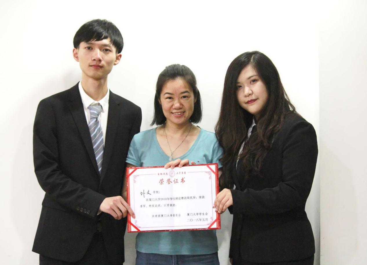 五月份中旬,厦门大学2018年学生辩论赛正式落下帷幕。这场持续了一个半月的辩论赛竞争激烈,共吸引全校25个学院参与,外文学院辩论队一路过关斩将,最终斩获季军,2016级俄语专业本科生秦肇轩同学以其出色的发挥获评半决赛“最佳辩手”称号。