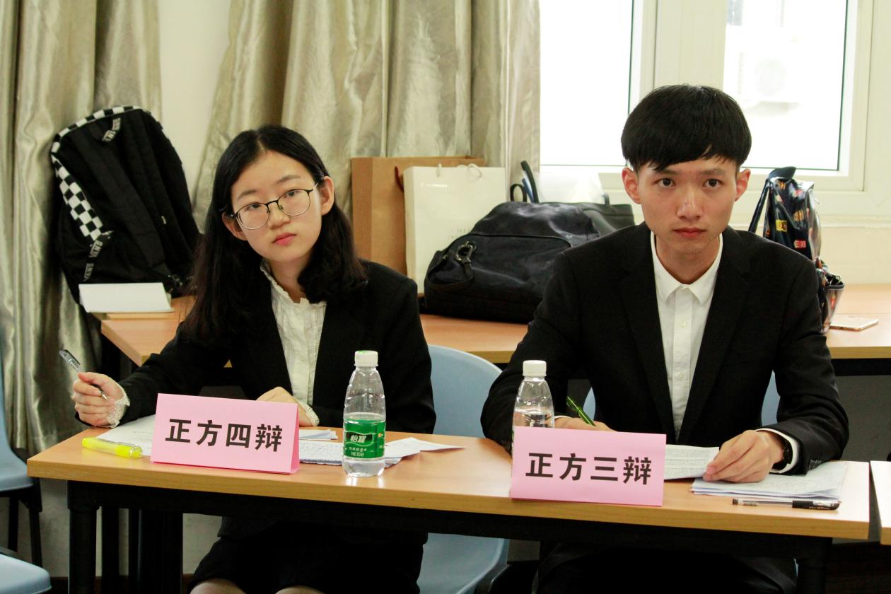 5月6日下午,外文学院与人文学院对战的半决赛在法学院C栋523室举行。本次比赛的辩题为“企业提倡狼性文化是利大于弊还是弊大于利”。比赛正式开始前,四位外文辩手分别以英语、俄语、法语、日语进行自我介绍,既展现出了外文人的独特风采,又给评委及在场观众留下了深刻印象。