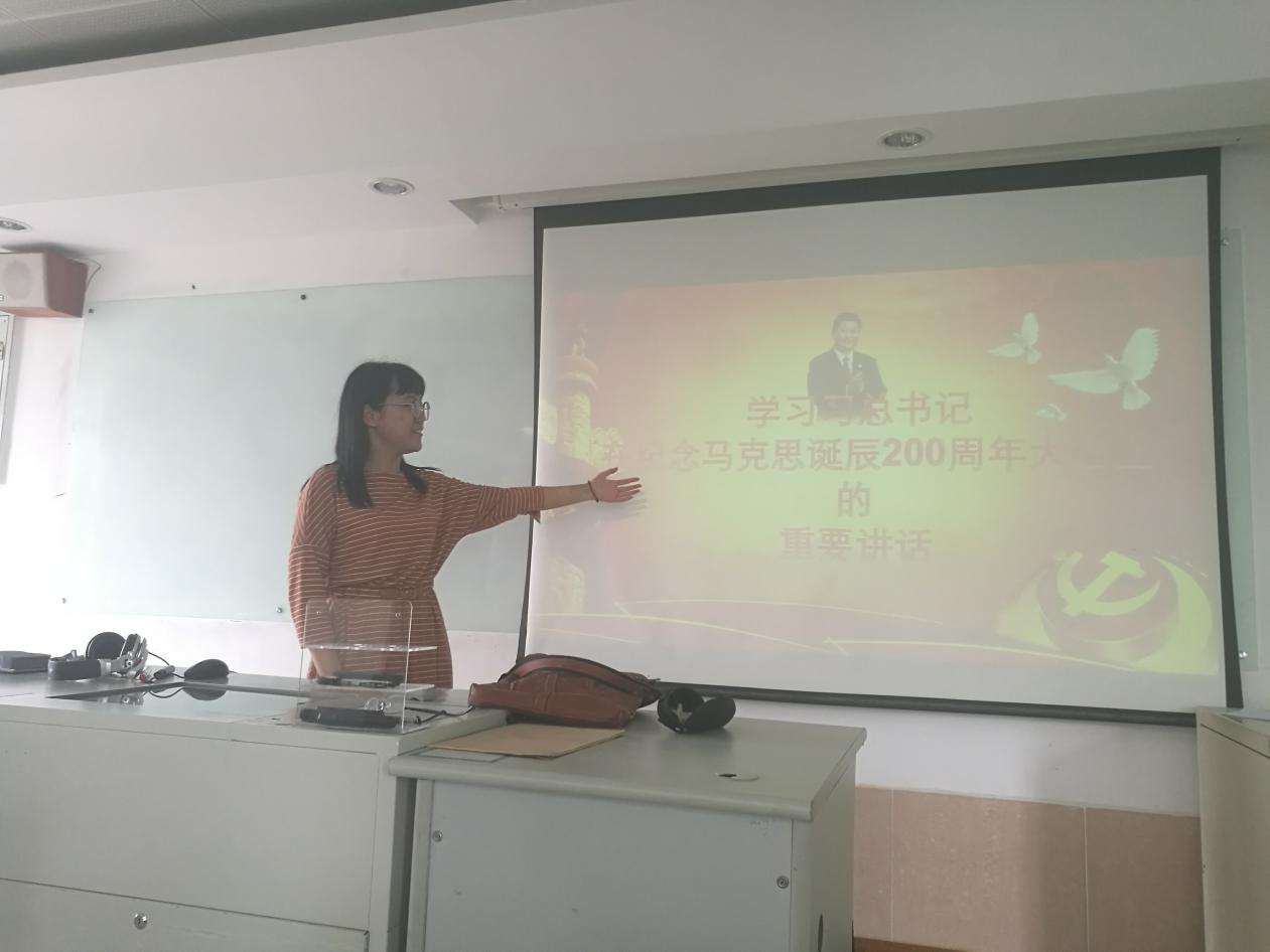 各团支部首先组织同学们观看了习近平总书记在纪念马克思诞辰200周年大会上的讲话视频,让大家深入了解马克思坎坷而又光辉的人生、知晓了马克思主义的宝贵价值、明确了学习马克思主义的重要意义。马克思的一生,是胸怀崇高理想、为人类解放不懈奋斗的一生,是不畏艰难险阻、为追求真理而勇攀思想高峰的一生,是为推翻旧世界、建立新世界而不息奋斗的一生。马克思留下的最有价值、最具影响力的精神财富就是马克思主义,它不仅深刻改变了世界,也深刻改变了中国。习近平总书记指出,我们要赢得优势、赢得主动、赢得未来,必须不断提高运用马克思主义分析和解决实际问题的能力,不断提高运用科学理论指导我们应对重大挑战、抵御重大风险、克服重大阻力、化解重大矛盾、解决重大问题的能力,以更宽广的视野、更长远的眼光来思考把握未来发展面临的一系列重大问题,不断坚定马克思主义信仰和共产主义理想。