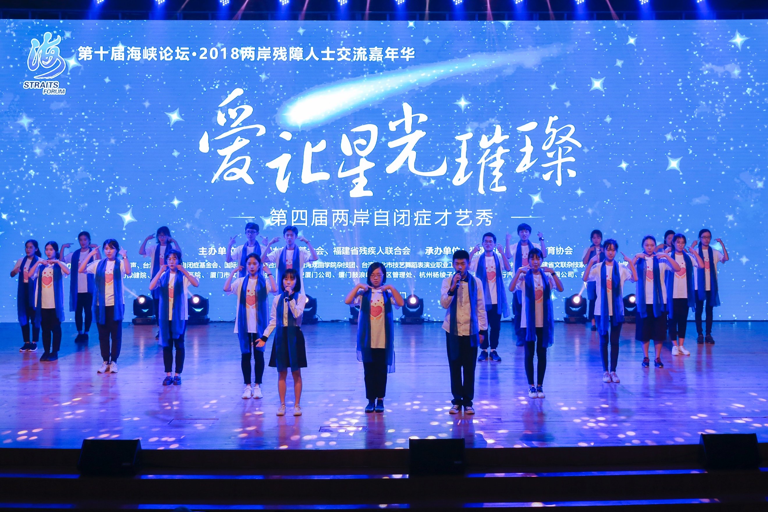 6月4日,“爱让星光璀璨”第十届海峡论坛·2018两岸残障人士交流嘉年华暨第四届两岸自闭症才艺秀在厦门大学科学艺术中心音乐厅举行。来自海峡两岸相关领域的专家领导、自闭症患儿、残障儿童及家属和厦门大学的同学们齐聚于此,呼吁社会关爱自闭症儿童,给予残疾人更多的重视和关怀。