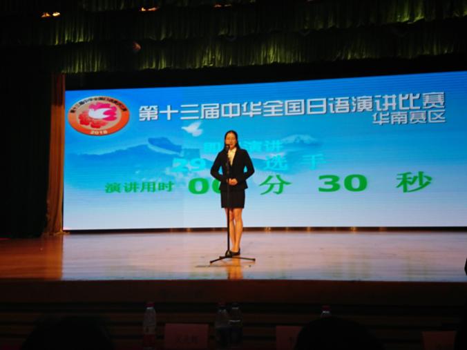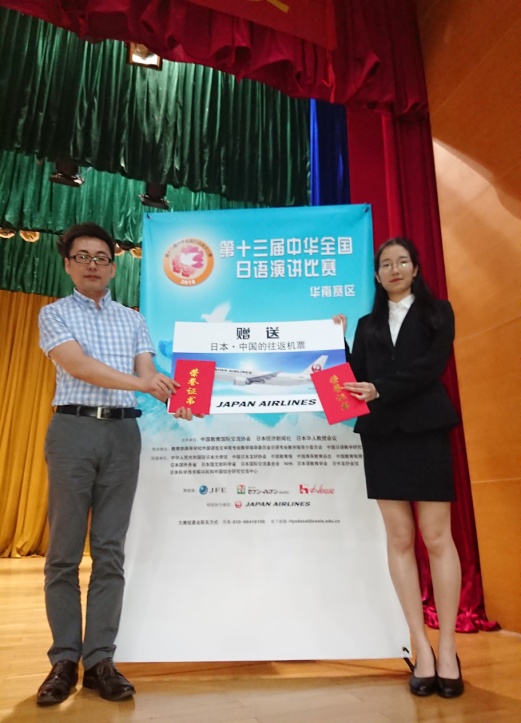 5月20日,第十三届中华全国日语演讲比赛华南赛区预赛在广东外语外贸大学举行。我院日语系2016级本科生阮琳榕同学在此次比赛中荣获特等奖,并将于今年7月份代表华南赛区赴日本东京参加全国总决赛和交流访问。带队指导教师日语系任星副教授荣获优秀指导教师奖。值得骄傲的是,本次获奖是我院学子在此赛事中连续三年荣膺华南赛区特等奖。