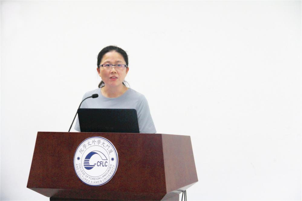 厦门大学教务处黄艳萍副处长首先上台致辞,她代表主办方表达了对所有领导、老师的热烈欢迎和对所有参赛选手的美好祝愿。黄艳萍副处长表示,此次邀请赛不仅为全方位展现英专学生的专业素养提供了机会和平台,同时也将为接下来地区性和全国性的写作、口语赛事选拔储备人才,意义重大。