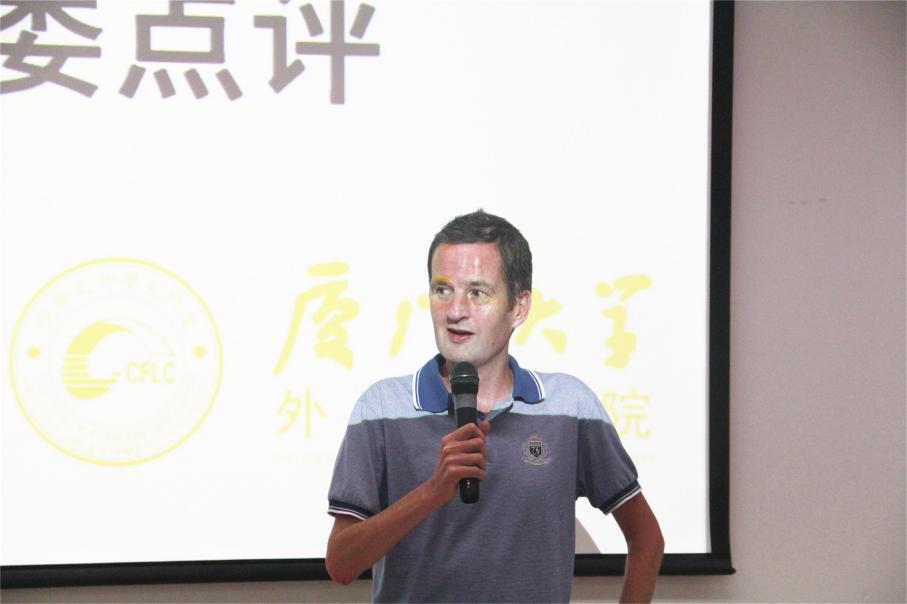 下午14时40分,诵读比赛正式开始。厦门大学外文学院副院长李美华教授,福建省外国语文学会会长、厦门大学外文学院英语系杨信彰教授,集美大学外国语学院院长黄锐教授,厦门理工学院外国语学院院长张跃军教授,复旦大学外文学院张冲教授,厦门大学外文学院英语系陈菁教授、苏欲晓教授以及外教Nicholas担任大赛评委。