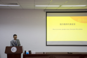 来自乌拉尔联邦大学的俄罗斯青年汉学家Дмитрий Евгеньевич Желобов用一口流利的汉语,借用《老子》中“千里之行,始于足下”的名句对本次厦门大学之旅表示殷切的期待,并祝愿本次“中俄大学生文化交流营”取得圆满成功。此外,来自乌拉尔联邦大学的俄罗斯姑娘Светлана Минеева用流利的中文介绍了自己的母校,也对此次文化交流营的丰富活动表示期待。来自莫斯科大学的俄罗斯学生代表КонстатинАвдошкин和Михаил Красноруженко首先向在场厦门大学外文学院俄语专业的老师们赠送了精美礼物,并转达了来自莫斯科大学的亲切问候。