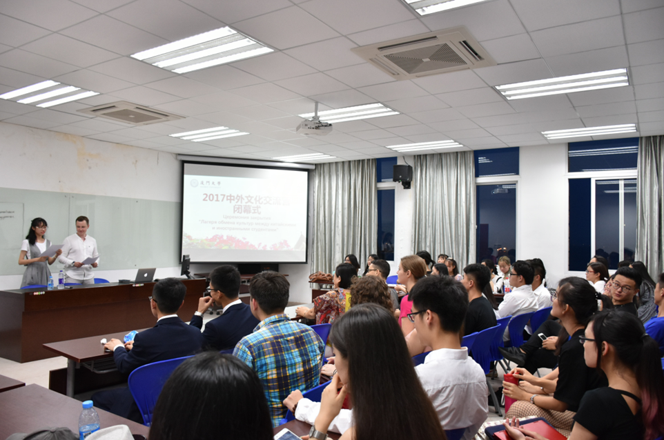 2017年6月29日晚七点,厦门大学外文学院515报告厅灯火通明,俄语专业师生和来自俄罗斯、乌克兰、吉尔吉斯斯坦的青年学子们济济一堂,盛装出席中俄大学生文化交流营闭幕式。