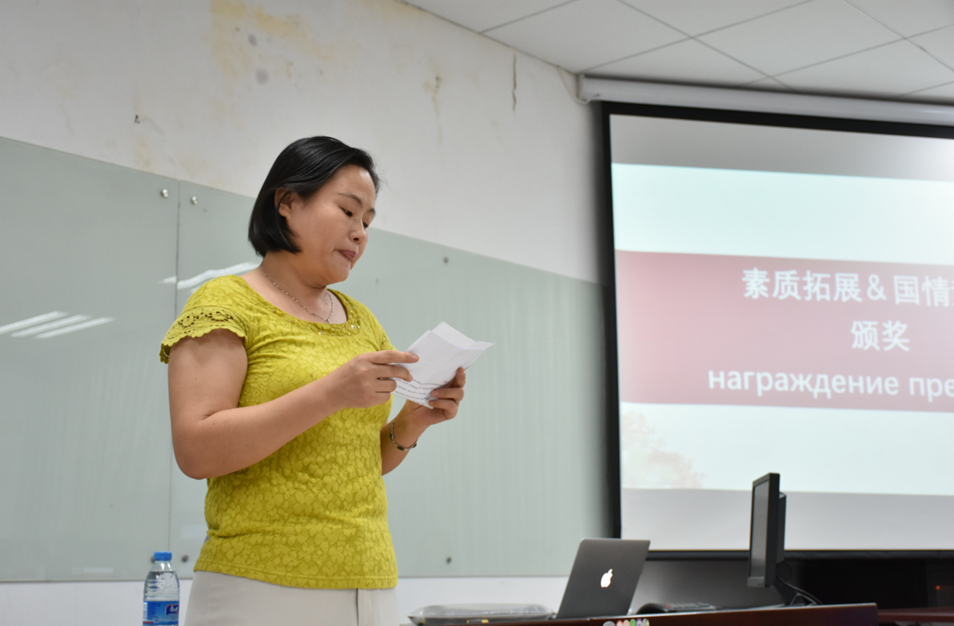 证书颁发环节,俄语教研室主任顾鸿飞教授为外国学生颁发结业证书,向前来参加中俄文化交流营的外国大学生表示感谢。她表示,厦门大学会永远对中外学子们敞开怀抱。