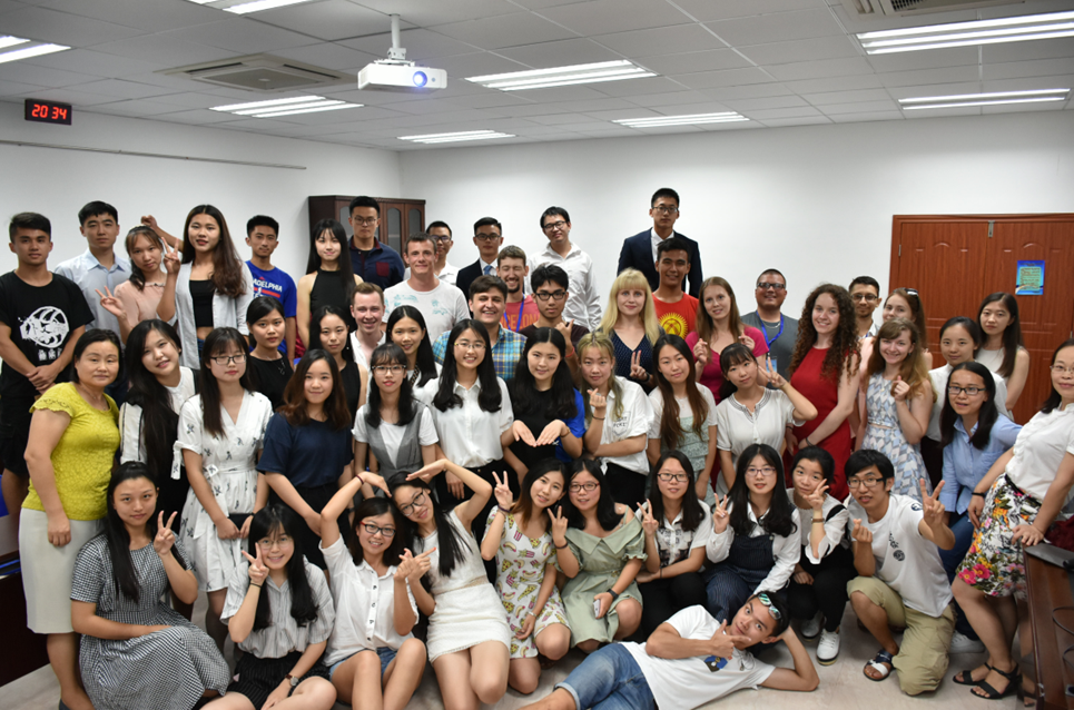 视频回顾环节,大家再次重温文化营活动的点点滴滴。不同主题的文化展示和讲座让我们对彼此的文化更加了解,学唱经典歌曲和朗诵经典诗歌拉近了中外学子的心,喜闻乐见的剪纸体验和行云流水的太极让外方学生感受到中国传统文化,别开生面的素质拓展、团队游戏和知识竞赛让中外学子亲身体会到跨国友谊,中俄美食体验让大家学习特色美食制作并体验舌尖上的美味,旅游活动让外方学子感受到中国发展的日新月异。大家在活动中互帮互助,在友好交流中提升外语水平,进一步了解彼此的文化,结下深厚友谊。
