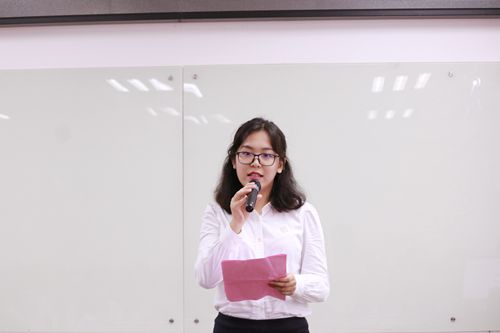 随后,外文学院2017-2018学年本科生团总支书记钟予晴同学、学生会主席方晨晟同学、宣传中心主任王乃加同学依次上台发言。钟予晴同学以“有序、创新、协作”三个关键词展望了未来一年的工作,提出了完善规章制度、创新活动形式、加强团队协作的要求,表达了希望在前一年的经验的指导下,本科生团总支工作能够在新的一年更上一层楼的期待。方晨晟同学以“外柔内刚,文圆质方,学贯中西,院甲南强”的外文精神为引,对自己与新一届学生干部们提出具体要求,希望大家在未来一年工作中努力做到“承载”、“承担”与“承受”。王乃加同学在发言中指出,2017-2018学年将是宣中承前启后、开拓创新的一年,希望新一届外文宣中人能做到不断突破进取、树立大局意识、努力精进自身宣传技能,不惧挑战、厚积薄发,在接下来的一学年中交出一份令人满意的答卷。