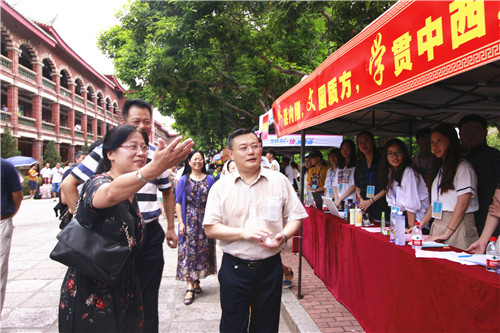9月9日至10日,在凤凰花的灿烂映衬下,外文学院顺利完成了2017级新生的相关迎接工作。迎新过程中,厦门大学校长张荣、校党委副书记林东伟等校领导一行莅临外文学院迎新点指导慰问;学院党委书记陈志伟,党委副书记郑新风、杨云良,副院长辛志英,团委书记、研究生辅导员乐无恙,团委副书记、2016级本科生辅导员肖盈,本科生教学秘书陈雯娜,2014级本科生辅导员杨盛澜,2017级本科生辅导员蔡宇,本科生教学秘书王晓华,研究生教学秘书邹柳新等老师分赴现场指挥迎新工作。