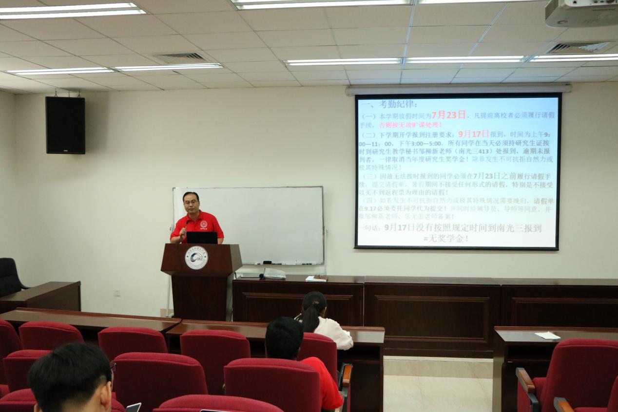 接下来,邹老师上台发言,介绍了一些重要的日程安排。此间,邹老师贴心地提醒即将步入毕业班的硕博研究生们一些关键的时间点,简单介绍了毕业相关的日程安排,提醒大家规划好完成论文的时间,也提醒其他年级的学生要按时完成课程论文。