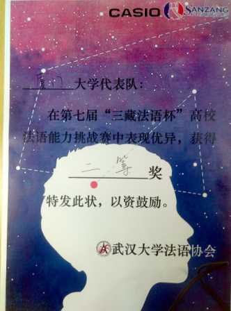 “高校法语能力挑战赛”是由武汉大学法语系、武汉大学法语协会主办,由法国驻武汉领事馆、法国高等教育署(Campus France)及武汉法语联盟协办的全国重大赛事,旨在考察参赛选手的法语应用水平,增强高校法语学习的氛围,增进校际间交流,发掘更多的法语人才。该赛事以其新颖的形式,生动的内容,先后吸引了众多知名高校的踊跃参与。
