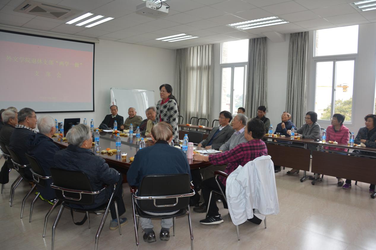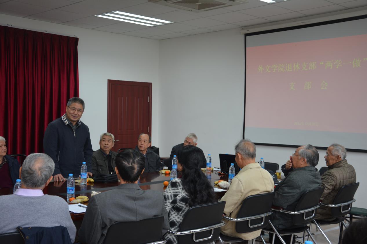 12月28日上午9点半,外文学院退休支部召开“两学一做”专题支部会。退休支部20位党员出席,支部书记张礼龙主持会议。院党委书记陈志伟到会并与老党员们亲切交流。