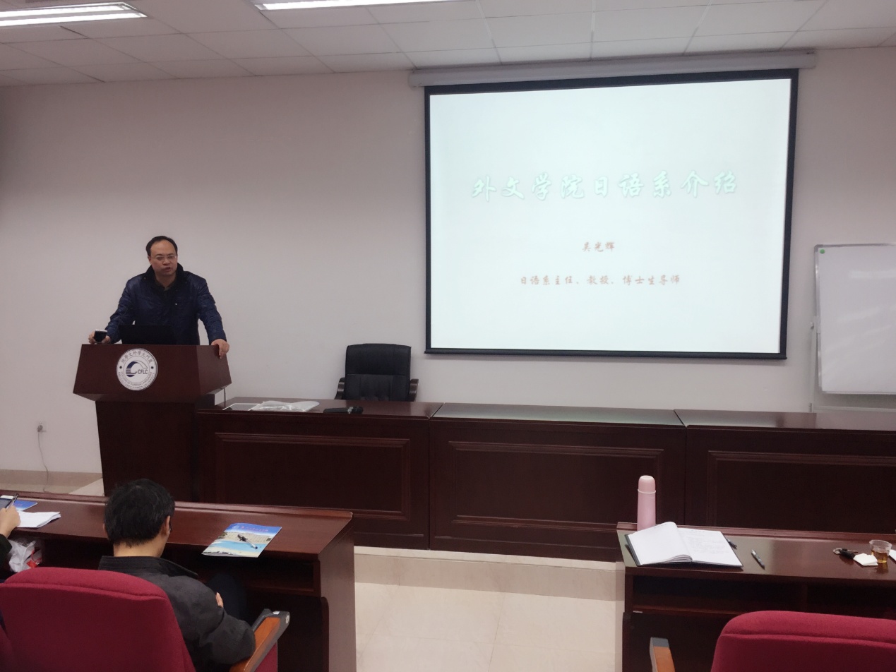 接着,吴光辉老师就日语系的专业、特色、建设成就及发展前景等方面向家长们指出了综合性大学的优势。他以自己本科及研究生所在学校的微信群规模为例子,得出了“本科选择大学”、“硕士选择专业”、“博士选择导师”的精髓,赢得了在场家长们的阵阵掌声。
