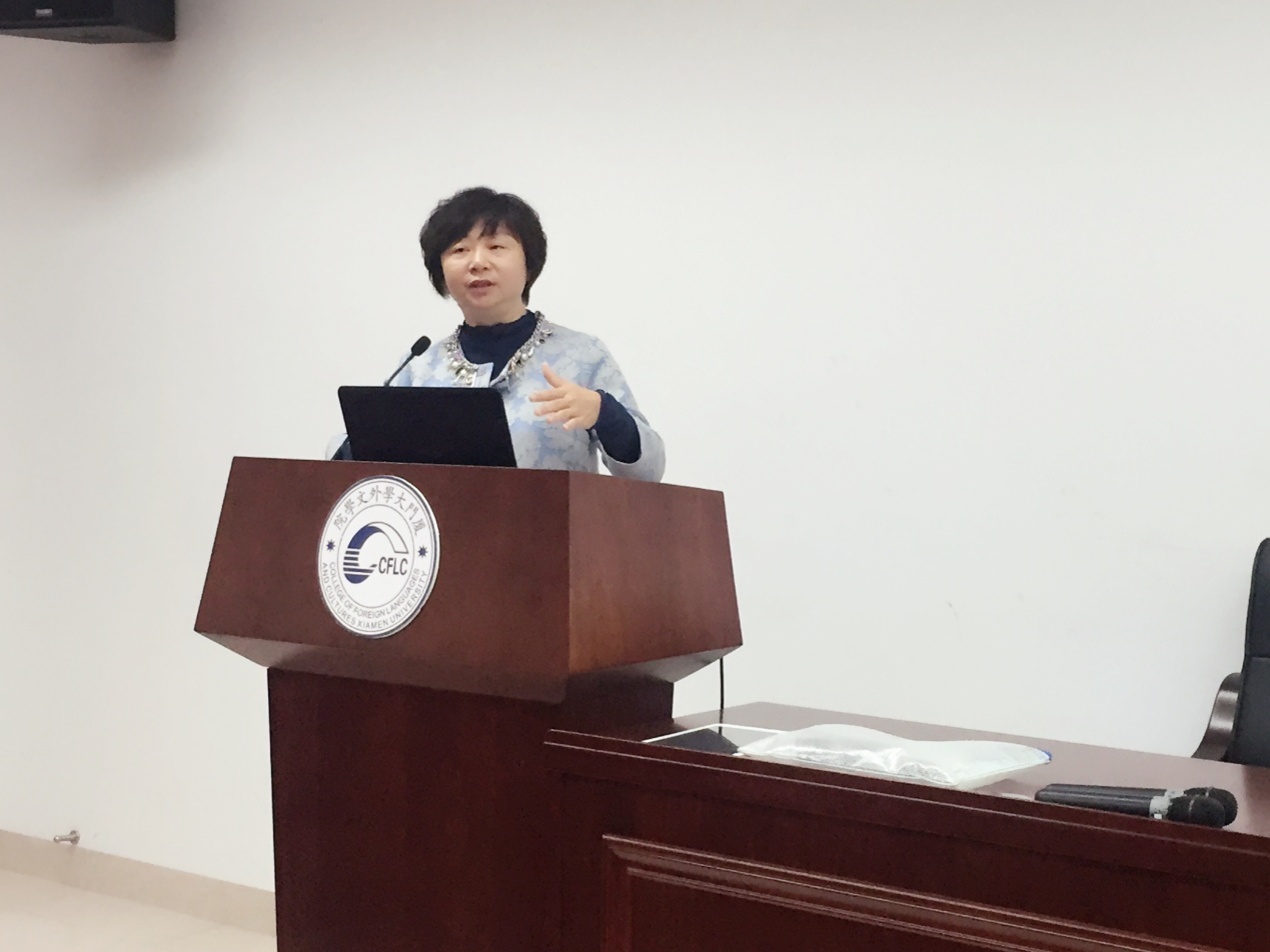 徐琪老师首先上台讲话。她先对到场的家长们表示热烈欢迎,接着从师资队伍、人才培养、国际交流、学业情况、就业情况及升学情况等方面对我院进行了整体介绍;其中,她重点介绍了外文学院的学科水平及本科生升学和就业情况。