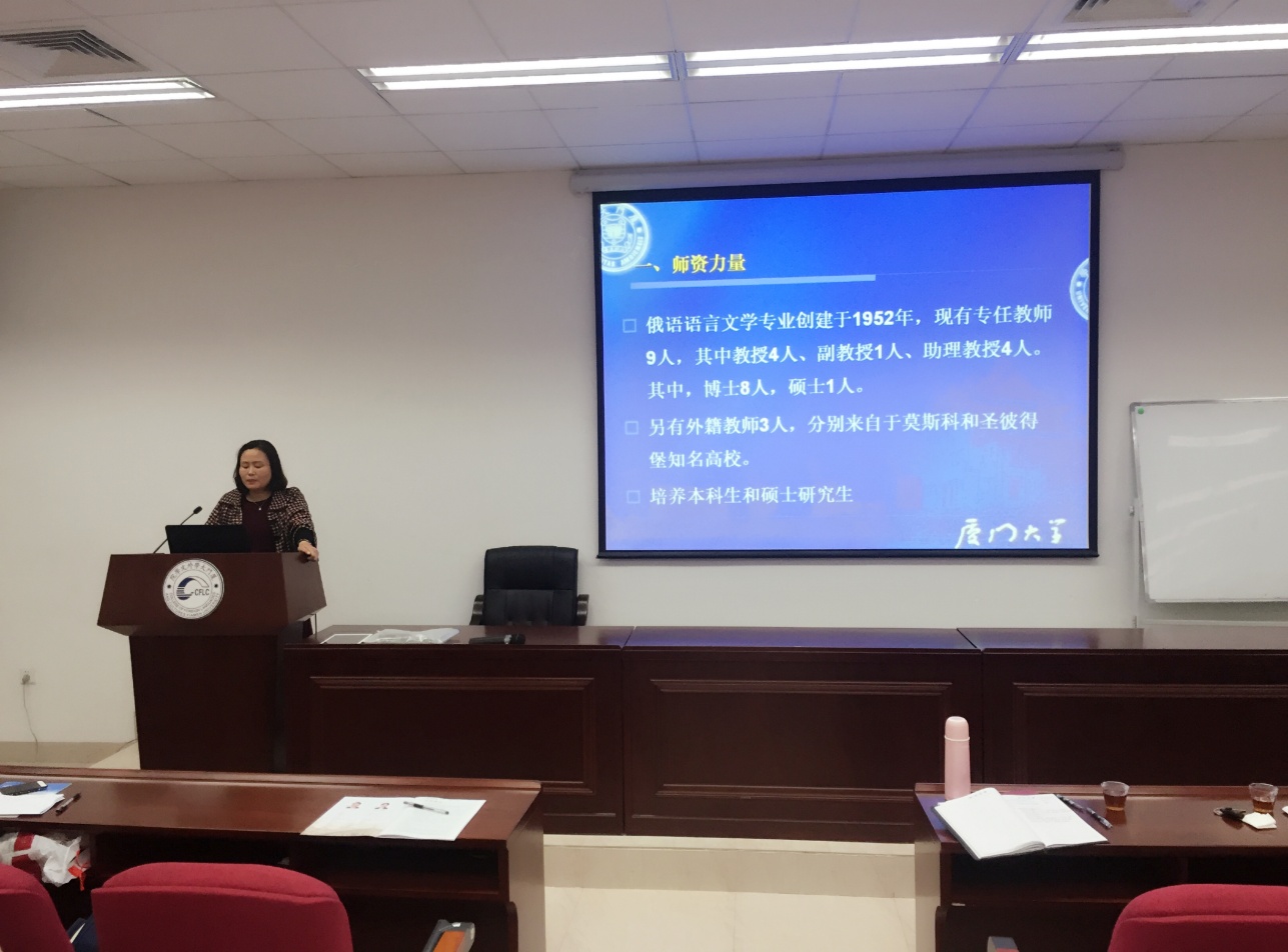 随后,顾鸿飞老师详细介绍了俄语专业的师资力量、办学模式、人才培养、课程设置、就业情况及教学成果。顾老师从自身作为家长的角度出发,向在场的家长们谈起了俄语专业的师生关系,正是由于小班教学,使得每位专业老师都能从思想、学业、生活等各方面对在校学生无微不至的关心。