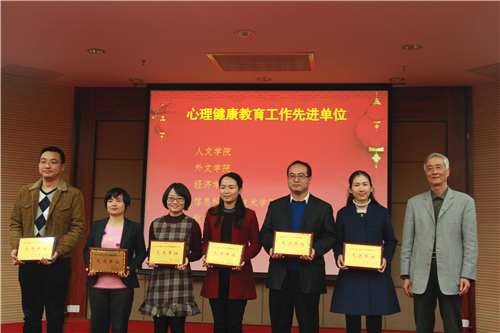 乐无恙老师(右三)代表学院领取“心理健康教育工作先进单位”奖牌