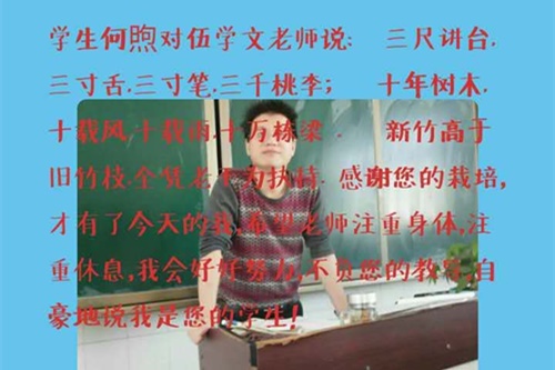 实践队成员李子聪利用此次实践机会,为恩师制作了线上贺卡,寄托自己的祝福。“德容天地,情系桑梓;学而不厌,诲人不倦”是她对恩师最真切的感恩;“云山苍苍,江水泱泱。先生之风,山高水长”是她对师风最深刻的体悟。