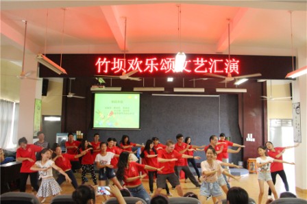 接下来还有各式各样的表演:温暖柔婉的歌声,高雅悠远的古筝独奏,诙谐搞笑的舞台剧等。诗歌朗诵《少年中国梦》等演绎出中华经典的铿锵音韵,舞蹈串烧展现出女生的袅袅婷婷和青少年的蓬勃朝气,日语妹纸们轻灵秀逸的合唱犹如知心姐妹间的娓娓夜谈。最后汇演以带队老师乐无恙和竹坝吴志荣老师和王老师、以及实践队队员邱倩怡合唱的《真心英雄》结束。整场表演风趣幽默,笑声频出。