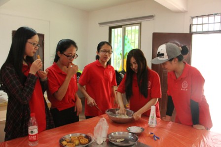 7月26日下午厦门大学外文学院研究生“囊萤之光”暑期实践队在学院研究生辅导员乐无恙老师和竹坝副校长吴老师的带领下来到竹坝学校世勤搂一楼教室参加南洋糕点品尝与制作”活动,在当地老师的指导下亲手制作竹坝特有的侨民糕点。南洋糕点种类繁多,包括千层糕、九层糕、木薯饼、蝴蝶酥、烤饼、糯米糕等,韧、脆、香、甜,每一款都独具风味。