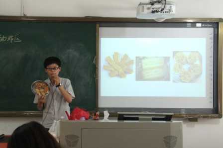 老师讲解中 今天实践队要制作的是蝴蝶酥。蝴蝶酥,顾名思义,外形似飞舞的蝴蝶,酥脆爽口,是一道极具特色的南洋糕点。首先我们要准备250g面粉、50g糖粉、两个鸡蛋以及少许猪油,队员们以小组为单位分工协作,从打蛋、和面到切片、成形,按照老师的指点完成每一个步骤,其间欢声笑语不断。也有的同学不满足于蝴蝶酥一种形状,自行设计各种花纹图案,如蝴蝶结、爱心、笑脸等。一会儿工夫,教室内香飘阵阵,各组互相分享成果,对同伴的手艺赞不绝口。