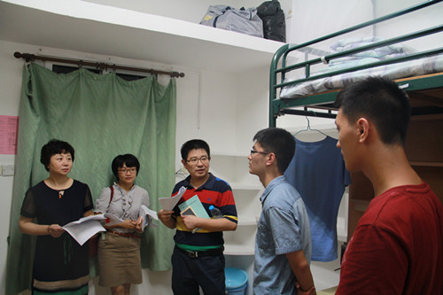 老师和学生干部们询问新生住宿情况 |