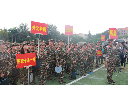 又是一年军训时,且看上弦满英姿。厦门大学2016年军训正在缓缓拉开帷幕。烈日骄阳融不化一颗颗赤子之心,狂风暴雨打败不了真正的勇士。先苦后甜、磨练当先,正是新同学们应学习的大学第一课。 8月26日下午3时30分,外文学院2016级本科新同学们在外文学院院楼南光三前的凤凰台集合完毕。在我院党委副书记杨云良老师和团委副书记、2016级本科生辅导员肖盈老师的带领下,同学们精神抖擞地走向上弦场,参加厦门大学2016级本科新生开学典礼彩排仪式及军训分兵仪式。同学们抵达上弦场后在教官的指挥下对第二天的活动议程进行初步演练。 8月27日上午8时,厦门大学2016级本科新生开学典礼暨军训动员大会在上弦场隆重举行,我院张龙海院长出席本次新生开学典礼。外文学院新生分布在四营十连一、二、三、四排和十一连四排,由杨云良副书记和肖盈老师带队入场。同学们列队整齐、斗志昂扬、高唱国歌,冉冉升起的五星红旗为大会增添了一丝庄严。 朱崇实校长在典礼上首先发表讲话。他对进入厦门大学学习的全体同学表示欢迎,尤其强调向远在马来西亚分校的同学们表示热烈的祝贺。朱校长向同学们提出几点期待,希望同学们能够“以感恩的心努力学习”、“以好奇的心探索学习”、“以快乐的心愉快学习”、“以谦虚的心认真学习”和“以宁静的心安心学习”,祝愿同学们能够在厦大度过人生中最精彩、最幸福、最美好的一段时光。朱校长同时指出,希望同学们在接下来的军训中能坚忍不拔、团结互助,弘扬长征精神,上好大学第一课。随后,教师代表和老生代表先后向同学们分享了自己在厦大工作、学习及生活的快乐经历与宝贵经验,紧接着,新生代表也在开学典礼上表达了自己对接下来在厦大学习和生活的美好憧憬与期待。2016级本科新生开学典礼在庄严的校歌声中圆满结束。 厦门大学2016年军训动员大会随之正式开始。校党委副书记、学生军训工作领导小组组长林东伟作军训动员报告并为军训团授旗。随着“厦门大学学生军训团”的大旗飘扬在上弦场上空,《中国人民解放军进行曲》奏响,厦门大学2016年学生军训正式拉开帷幕。 士不可以不弘毅,任重而道远。希望2016级外文学子能在军训中克服各种困难,磨炼意志、砥砺自我,充分展现当代大学生的朝气与活力!  同学们整装待发