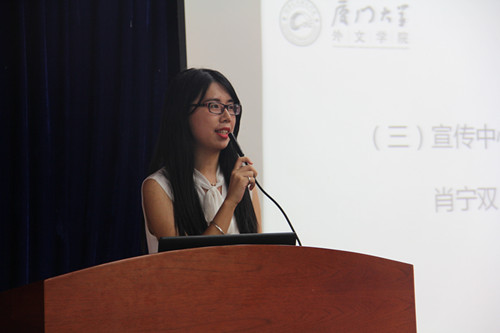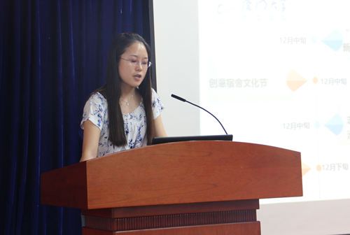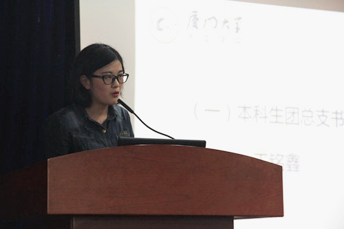 本科生团总支副书记刘一君介绍本学期重要学生活动安排 本次大会不仅为同学们以后的学生工作指明了方向,也激发了同学们的学习与工作热情。希望外文本科生团总支学生会、宣传中心全体学生干部能在以后的学生工作中脚踏实地、勤勤恳恳,用自己的热情与汗水为外文学院学生工作更添活力与色彩。