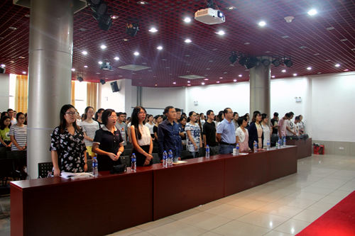 10月21日中午12点40分,外文学院2016-2017学年团校学生骨干培训班开班仪式在自钦楼二楼报告厅顺利举行。外文学院团委书记乐无恙老师,团委副书记、2016级本科生辅导员肖盈老师、2015级本科生辅导员周晓牧老师、2014级本科生辅导员杨盛澜老师以及兼职辅导员们均出席本次大会。外文学院本科生团总支学生会、宣传中心全体成员悉数到场。大会由外文学院学生会副主席王雅洁同学主持,开班仪式在庄严的国歌声中正式开始。 首先,院团委书记乐无恙老师上台讲话。他代表学院团委对培训班的举办表示诚挚的祝贺,对参加此次培训班的学生骨干表示热烈欢迎。接着,乐老师就担任学生干部的意义及如何做好学生工作展开了探讨,向在座的同学们传授了宝贵的经验。对于如何做一名好的学生干部,乐老师提出了四点要求:一是要热爱自己的工作,保持对学生工作的热情;二是要树立良好的学生干部形象,热忱为广大同学服务;三是要拥有集体意识和团队协作的精神,遇问题要通力协助解决;四是要增强平衡学习、工作与生活三者关系的能力。最后乐老师希望大家能不忘初心、继续前进,做一个信念坚定、敢于担当的好干部。