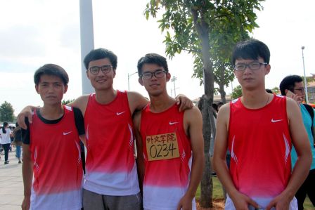 一条跑道,要四个人去打造一个信念;一个终点,要四个人去拼搏一场较量;一根普通的木棒,红白对比刻画出非凡的意义。接力赛,考验的不仅是速度和勇气,更是队员之间的配合跟默契。 运动场上战鼓擂擂,检录处四名运动员正在对比赛战术进行最后的商榷。“每一棒都不能掉以轻心,起跑和冲刺要快,接棒要稳。另外,大家放松心态,不要太过紧张。我们秉着重在参与,快乐运动的精神坚持到比赛的最后一刻。”说这话的是第一棒的运动员许艺海,作为班级的体育委员和研会体育部的骨干成员,他一个人报名多项比赛,积极参加运动会,起到了很好的带头作用。训练时由于强度太大,左膝旧伤复发,但他仍坚持比赛不掉队。他说“接力赛最重要的是团结。可能单独来看,我们每个人都是形状独特的拼图,但比赛的时候,要有效拼接,才能呈现出精彩图案。” 正如许艺海所说。比赛哨声一响,他就似离弦的箭一般飞奔出去。善于起跑和提速的他是第一棒队员的不二人选。第二棒则是性格稳健的吴恭超,速度也不甘示弱,跟前一名运动员拉近了距离,完美地完成了接棒递棒的神圣仪式。人高马大的夏虎作为第三棒出场,拿到棒的那一秒钟,他没有丝毫迟疑,飞快地冲重围,为第四棒的冲刺赢得了有利的时间。最后一棒的冲刺者,是耐力与速度并存的张广锡,凭借着强大的耐力和拼搏的精神,为接力赛程圆满地划上了句号。 “在接到棒的那一瞬间,我心中升起一股强大的力量,感到我们四个全部的热情都寄托在我身上。我必须全力以赴,直至终点。”张广锡如是说。“这一根小小的木棒,传递的是勇气和力量,连接的是团结和友爱。我很庆幸和他们并肩作战。” 当被问及参加此次运动会的最大感悟时,吴恭超说:“我觉得运动会最重要的是与运动息息相关,休戚与共的过程。在体验中,我们已经领略到运动的大成之美。现在的大学生,尤其是研究生,走出来运动的人太少了。‘宅’似乎是一种潮流,但‘动’才是真正充满智慧的生活方式。”夏虎也表示“希望有更多的学生参与到运动中来,体验运动的魅力,塑造健康的体魄。” 外文学院虽男少女多,但参加男子4*100m接力赛的运动员们一表人才,玉树临风,毫不逊色于其他参赛选手,是外文学院当之无愧的招牌F4,为外文学院的体育事业带来流星雨般绚烂的明天!