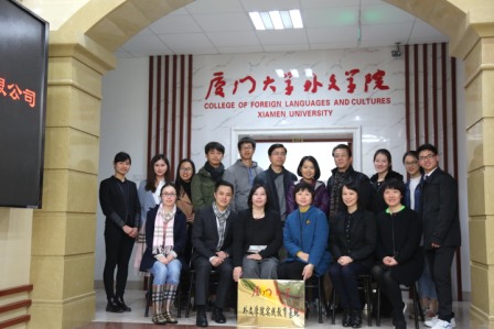 会议伊始,法语系主任胡佳老师对厦门奥梅埃森设计文化传播有限公司的来访表示热烈欢迎并简要介绍了相关背景情况。他说:去年,我院申报的“厦门大学外文学院多语种共享校外实践教育基地”立项得到了学校的支持,其目的是创新性的共享实践教育基地模式有助于搭建一个实习实践教育的大平台,使我院多语种学生都有机会走出校园参与实践。目前已经签署协议的依托单位有:福建海洋研究所、法国杜帕特(酒业)集团中国代表处。厦门奥梅埃森设计文化传播有限公司是第三个加入的单位。实际上,该公司从15年开始就已经接纳了我院各专业的本硕学生参与实习。今年3月初,应公司的热情邀请,我院师生代表对该公司进行了访问,双方就建立“厦门大学外文学院实践教育基地”及后续的友好合作事宜达成共识。