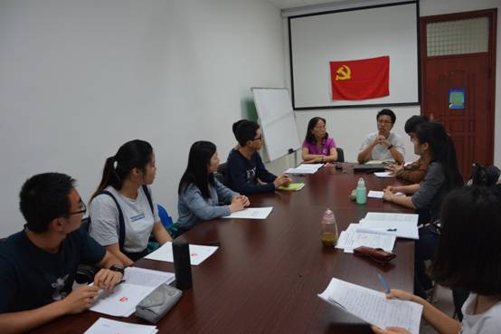 2016年5月19日晚,在外文学院“党建工作室”(南光三211),该院2014级本科生党支部的党员发展大会现场迎来了一位特殊的参会人员,校关工委“两学一做”学习教育联系学生党支部的陈力文主任。她的到来,得到了支部全体党员和积极分子的热烈欢迎。 这是一个原本仅有4个人的小支部,这同时也是一个拥有80余名积极分子后备力量,以及21位刚刚通过院党委审核的发展对象的支部。如本批次顺利发展,支部即将成为一个25人的大支部。这是支部第二次举行党员发展大会,由于时间关系,仅讨论部分对象。本次会议由党支部书记谭晨主持。