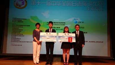 05月29日,第十一届中华全国日语演讲比赛华南赛区预赛在广州的艳阳下顺利落幕,经过命题演讲和即兴演讲两环节的激烈争夺,外文学院日语系2013级本科生黄宇宏同学荣获本次竞赛特等奖,将在7月作为华南赛区的两名代表之一,赴日本东京参加总决赛和交流访问。日语系任星博士作为指导带队教师,荣获了优秀指导教师奖。