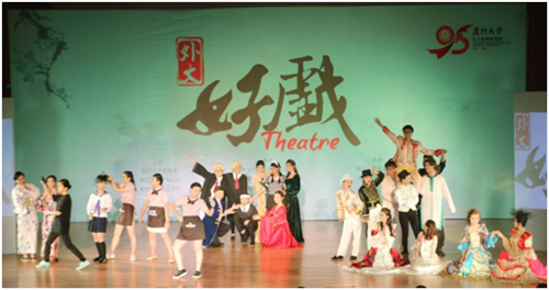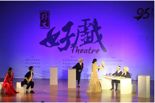 6月10日晚的科学艺术中心音乐厅灯光熠熠,热闹非凡。由厦门大学教务处、研究生院和外文学院共同主办,外文学院英语语言文学系、日语语言文学系、欧洲语言文学系、法语语言文学系及外文学院团委承办,厦门大学英文戏剧社、外文学社协办的“外文好戏”之日、德、俄专场“三国演艺”――《麦大劳的“野心”》《钦差大臣》《破瓮记》用120分钟精彩绝伦的表演为广大师生献上一场视听盛宴。 日语剧目《麦大劳的“野心”》讲述了一个山寨汉堡店与笨贼之间发生的喜剧故事。来自外文学院日语系的七名演员在老师们的悉心指导下,经过长达三个月的精心排练,将台词和表演动作熟记于心,同时和道具组和场务组的同学默契配合,感情充沛,既讽刺批判投机取巧的行为,又宣扬赞美互帮互助的精神,极具感染性,完美地将《麦大劳的“野心”》呈现给了观众。 俄语剧目《钦差大臣》演绎了“一部行走的俄国官吏病理解剖学教程”。近二十余名演职人员的精心排演为我们讲述了一则纨绔子弟在市长女儿比“武”招亲的过程中假扮钦差、引发姑娘们争风吃醋的故事。妙趣横生的故事场景,生动活泼的实力演技,不时引发台下观众的阵阵喝彩与掌声。 德语剧目《破瓮记》则是德国剧作家、富有创造力的现实主义诗人海因里希・冯・克莱斯特的代表喜剧。德语专业学生的此次演出依靠独特的剧情和大气的演绎,给观众们带来了无限的欢笑与感动。当上帝的宠儿亚当和夏娃走出伊甸园,一场因破瓮引发的有关人性的博弈精彩上演,华丽精美的服饰布景、巧妙的故事架构、激烈的情感碰撞,都令台下观众赞不绝口,回味无穷。 本次“三国演艺”专场演出由外文学院副院长徐琪教授担任总导演,此外还特别邀请人文学院中文系戏剧戏曲学博士林显源、刘颖灏两位老师分别担任总导演及舞台监制。近两个小时的演出诚意满满,演员们的精湛演技、细腻的舞台布景、精美的服装设计、炫目的灯光效果无一不让人感动和惊喜。台下的观众聚精会神,随着故事情节的发展欢笑或揪心。演出谢幕后,很多观众依旧沉浸在余韵中,久久回味,无法忘怀。经久不息的掌声就是大家对此场演出的最佳认可。 “三国演艺”作为首届“外文好戏”系列演出之一,充分展现了中外戏剧文化的交流融合,日、俄、德三种语言通过戏剧的形式散发出各自独特的魅力,激发了同学们学习外语的热情,同时也为热情浪漫的厦门大学更添一分别具一格的人文气息。