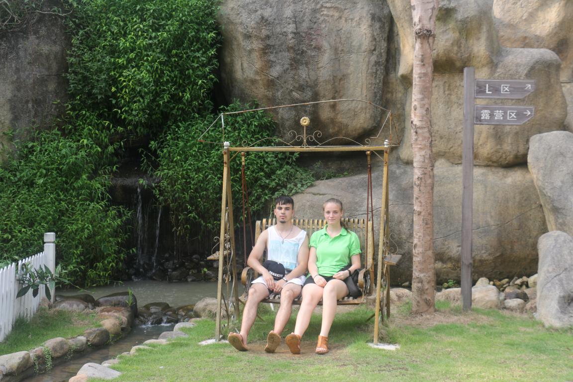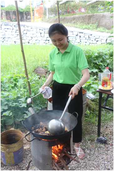 经过约一小时的车程,来到期盼已久的同安房车公园。这里绿草茵茵、流水潺潺,可谓小桥流水人家。工作人员已将锅碗瓢盆准备好,烧烤的碳也已经变得红彤彤,大家内心的激动与喜悦溢于言表,立即投入到紧张的劳作中:有的洗,有的削,有的切,有的煮,忙得不亦乐乎。中方小伙伴们悉心准备秋葵炒蛋、麻辣香锅、黄焖鸡、姜母鸭等中国特色美食;而俄方小伙伴们则认真准备俄罗斯的特色美食:борщ(红菜汤),окрошка(冷杂拌汤),шашлык(烤肉串)。