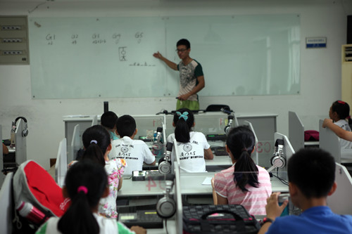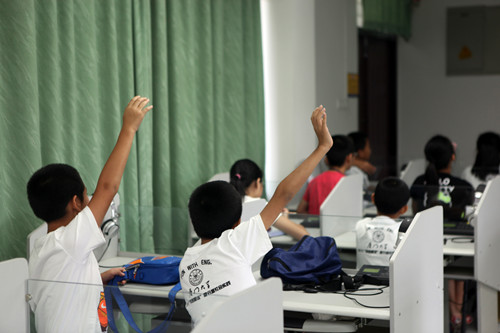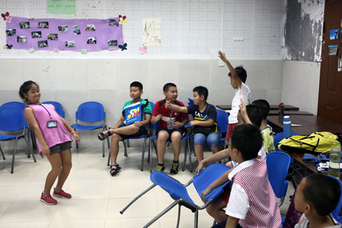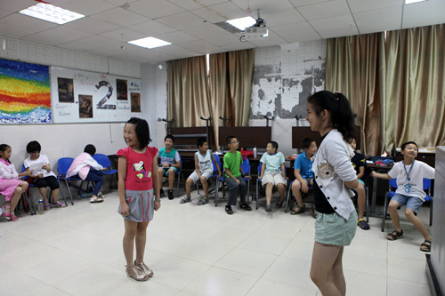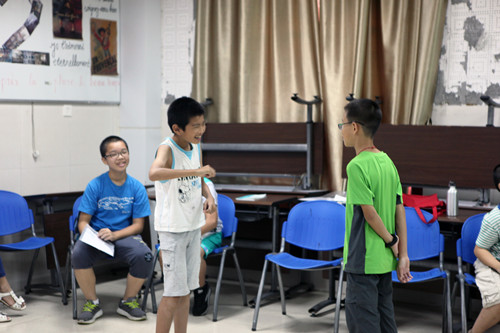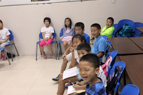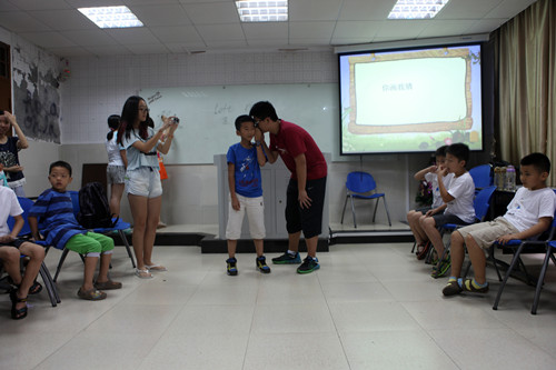 7月8日上午,厦门大学外文学院“英言厦语”实践队开展了一系列英语沙龙活动,旨在让小朋友们在轻松愉悦的氛围中积累英语知识,同时也促进团队协作,增强灵活应变的能力。 活动共分三个环节。第一个部分是一个经典的猜词游戏――“吊死鬼”(hangman)。游戏规则是老师先提示字母数量然后让小朋友们猜,猜对就把该字母写在相应位置上,猜错就开始画小人上吊图,在画完前猜出单词全部就算赢。反之,画完上吊图就输了。 复习过之前教过的单词之后,游戏便开始了。有的班是以个人为单位比拼,有的班是分成了不同的小组进行车轮战。看似简单的游戏,却让每个小朋友的心像垂挂的小人一样高高悬起,紧张不已。老师一给出字母个数时,小朋友们便开始绞尽脑汁冥思苦想。要是答对了他们就兴奋不已,高呼万岁;若是没答对就愁眉苦脸,特别是看到绞刑架上的小人一笔一笔被画完时,全班小朋友都来帮忙猜词,努力不输掉游戏。每个班的小朋友们都团结协作,合力猜出了比如resolution、supermarket等长难单词,令授课的老师们惊喜不已。 第二个游戏主要是为了考验小朋友们的反应能力。首先老师准备了人体各个部位器官的英文单词让小朋友们熟悉,接着请出小朋友上台,当老师说出某一身体部位时,小朋友便要立刻作出反应指出自己身上的相应部位。在这个游戏中,常常有小朋友忘记,当听到“eyes”等复数名词时两边都要指到。而这个游戏正是加深了他们对复数单词的概念。除了这个游戏之外,还有一个大家都很熟悉的游戏――“萝卜蹲”,不过今天玩的是它的英文版。用各种不同颜色来作为小朋友的代称,而他们则要一边做蹲下的动作,一边用英文指定下一个下蹲的颜色,反应不过来的人就被淘汰。这个游戏的过程同样是爆笑连连,有的小朋友忘记自己是什么颜色;有的小朋友说错了先后顺序,“坑”了自己一把;有时赛况往往在两个人之间僵持不下:只见“white”蹲完“blue”蹲,“blue”蹲完“white”蹲……引得观众们笑声不断,嗨翻全场。 最后的环节是“你画我猜”。两个人为一组,一个人看着老师给出的词组,用自己的肢体语言将其表演出来,而另外一个成员则要猜出这是什么词组。这个游戏同样十分刺激,特别是看别的小朋友在上面陷入瓶颈的时候,底下的小朋友恨不得冲上去替他比划。好在小朋友们都能够密切协作,配合默契,大部分的词组对他们来说都是小菜一碟。有的小朋友的表演属于“抽象派”,没人能猜出他想表达什么;有的又是滑稽大师,动作令人忍俊不禁。所有人都尽情地享受着游戏,大家都乐在其中。 一上午的英语沙龙活动让我们看到了小朋友的活泼、机智、可爱、团结……寓教于乐,启智于行。在传递知识的同时传递快乐,这也是”英言厦语”夏令营的宗旨:Fun with English。愿每个小朋友们都能在这里度过一个快乐难忘的暑假!