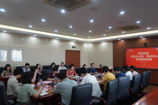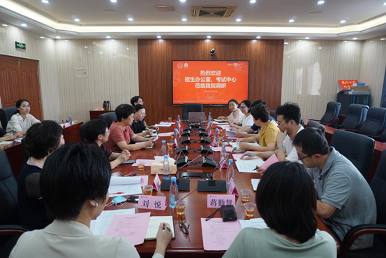 会议伊始,刘艳杰主任分别从招生计划、报录情况、专业志愿满足率、录取分数的角度介绍了近几年外语学科保送类和普通类专业招生情况,充分肯定了外语学科招生工作所取得的成绩,并同时结合中学和其他高校的情况展开横向对比,为双方讨论招生事宜提供了详实全面的背景数据信息。紧接着,陈菁院长及学院各位参会老师围绕本科生招生、研究生招生以及台港澳侨生和国际学生招生议题,讨论外语传统学科和新兴交叉学科的发展前景和问题,招生办公室和考试中心相关负责人一一进行分析,并结合相关政策探讨可行的解决措施。通过本次调研,双方在良好的沟通中有效打破信息壁垒,聆听建议意见,为进一步提升人才培养质量强化共识、凝聚力量。