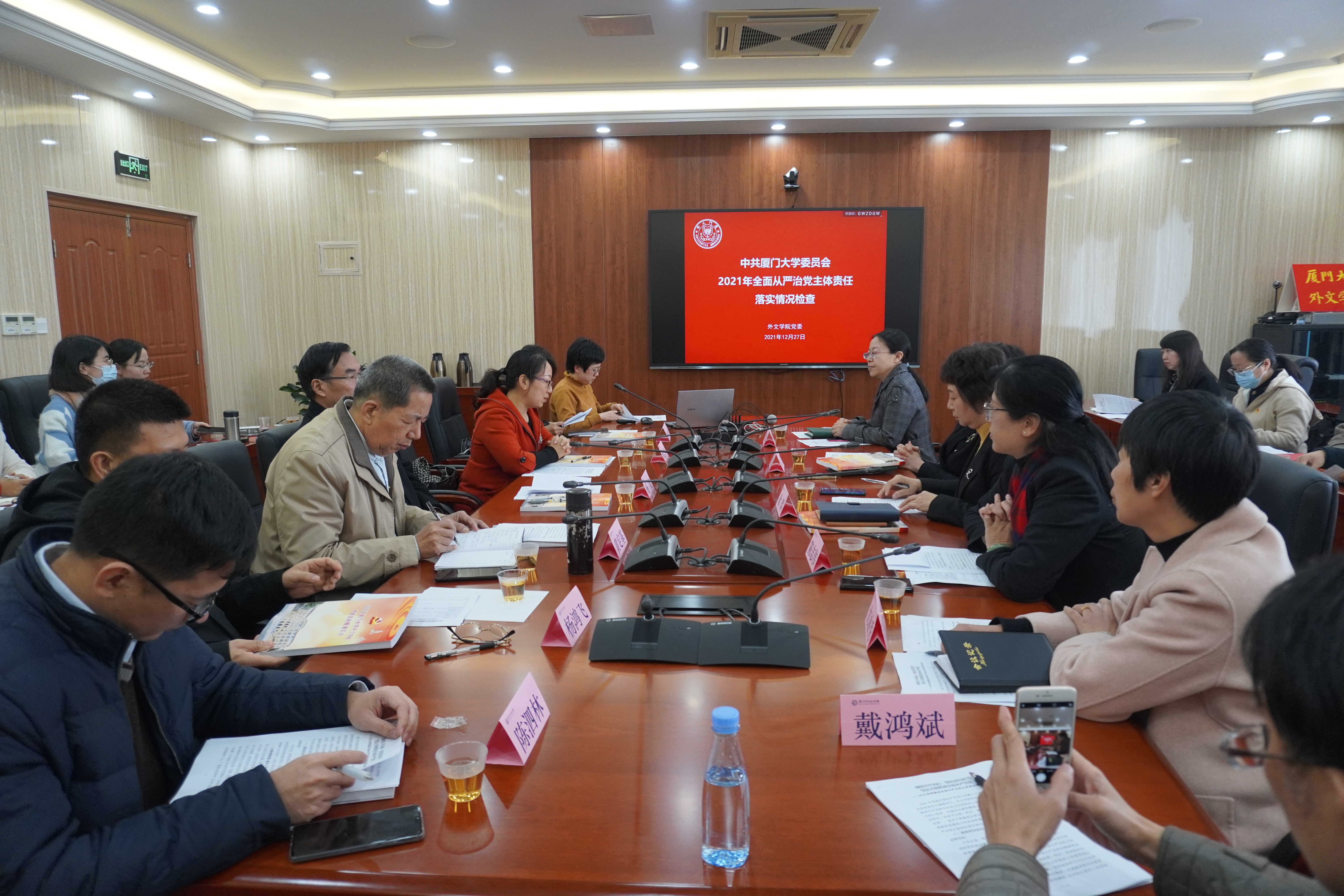 12月27日上午,厦门大学副校长杨斌带领校党委2021年全面从严治党主体责任落实情况第二检查组赴外文学院开展检查指导工作。检查组副组长、校党建办主任兼组织部副部长廖志丹,检查组成员杨鸿飞、洪少丹、陈泗林及联络员肖宁双参加检查。校基层党建工作联络员黄定基,国际中文教育/海外教育学院院长、原外文学院党委书记陈志伟,学院新任党委书记徐琪,院长陈菁,党委副书记沈丽秀,副院长辛志英、江桂英、戴鸿斌,以及党支部书记代表出席了会议。会议由廖志丹主持。