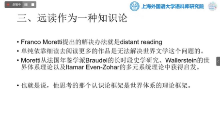 耿教授认为,远读与元数据并非简单的一种研究工具,背后牵涉的实际上是一种数据化思维的认识论。它对知识的重新认识为在大数据背景下反思翻译知识的生产和传播规律提供了新颖的视角、方法和途径。人文学科应该主动拥抱数字技术,更为复杂地思考这个世界和更多尚未开启的知识空间。