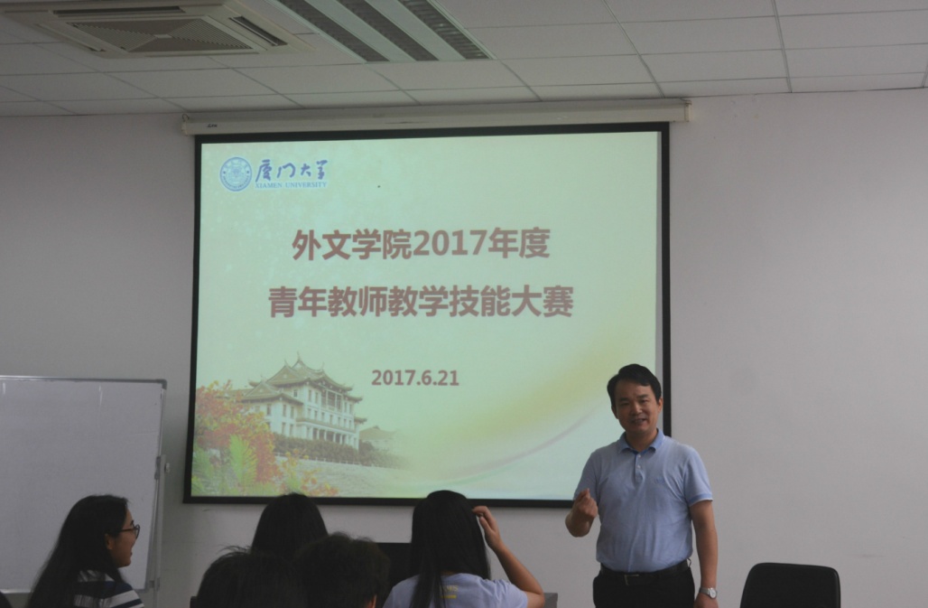 为了提高教师教学组织能力、展示青年教师教学风采、培养优秀青年教学骨干,外文学院于6月21日上午在南光三319举办了2017年度青年教师教学技能大赛。