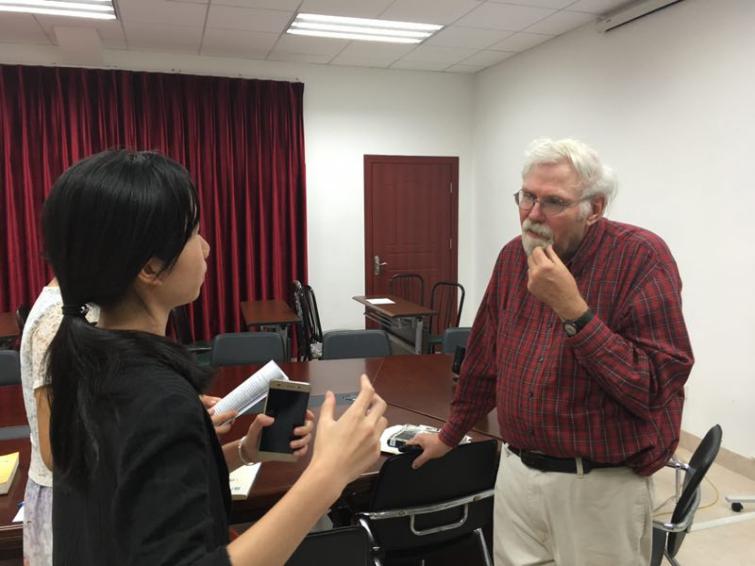 2016年11月3日晚上7点,厦门大学外文学院319教室迎来一位远道而来的客人——哈佛大学文学博士,美国爱达荷大学名誉退休教授Hesford Walter,他为到场的外文学子献上一场别开生面的主题讲座,题为“White Dolphin and White Whale——A Cross-Cultural Connection and Whiteness”。