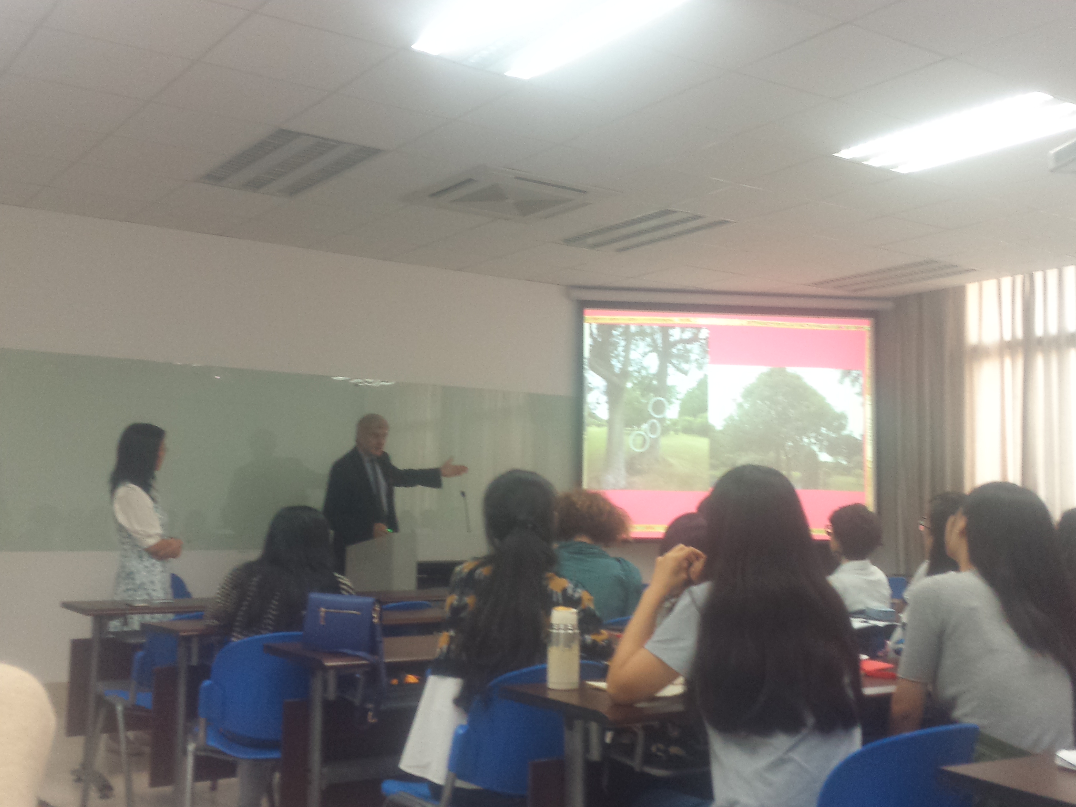 最后,教授与同学们进行了问答互动,细致耐心的回答了同学们提出的问题,并邀请与之私交颇深的主持人李美华教授与大家分享了一首以Chrimes教授家庭院所做的诗。在场同学们欢声笑语,受益匪浅在欣赏李美华教授所著诗作的轻松氛围中结束了此次讲座。