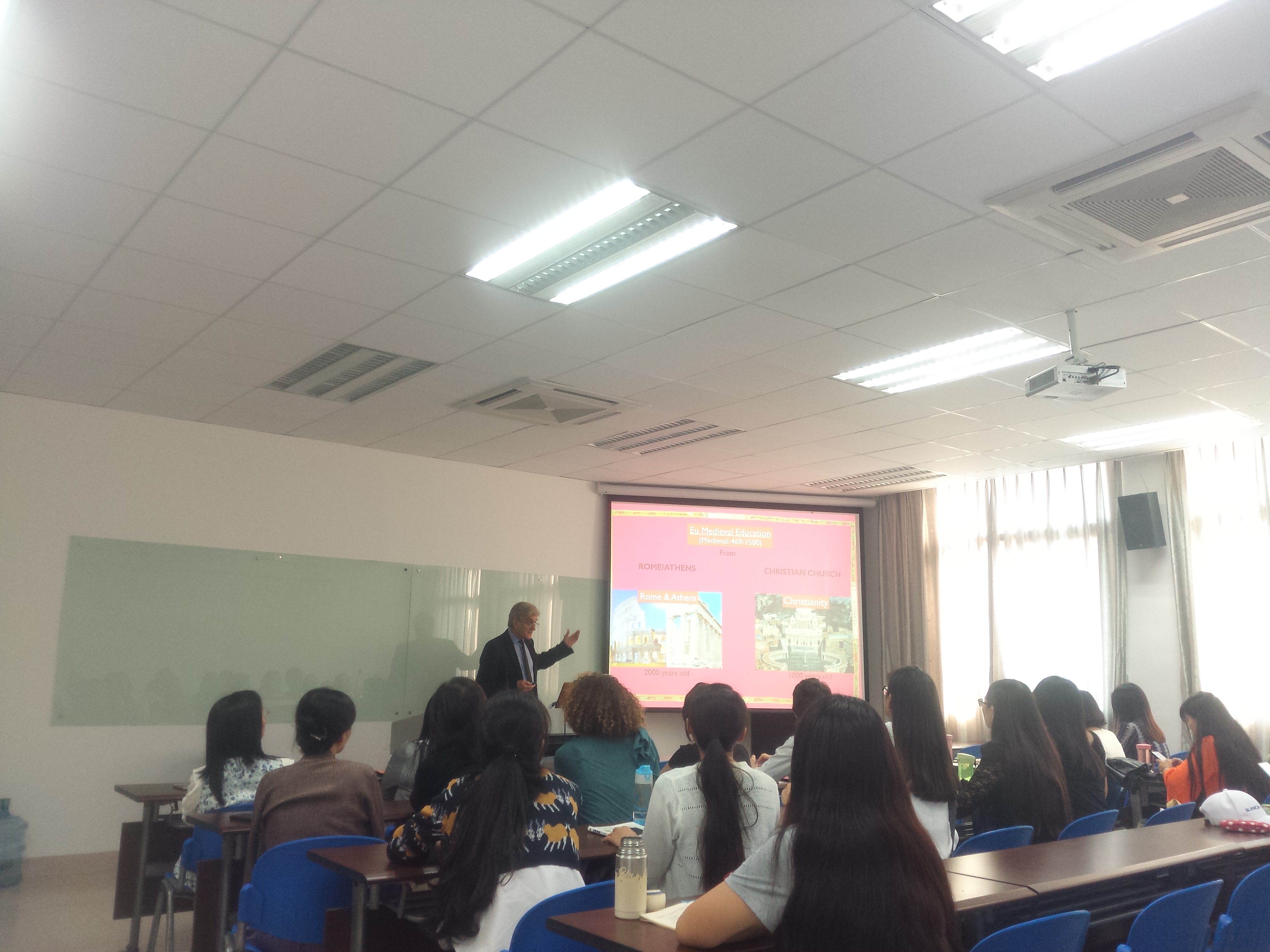 2016年11月14日下午三点至五点,来自英国剑桥大学的Nicholas Chrimes教授在外文学院南光三教学楼415会议室,为我院师生带来了精彩纷呈的题为“剑桥大学与欧洲教育的灵魂与精神”讲座。外文学院副院长李美华教授受邀参加并主持了本次讲座。