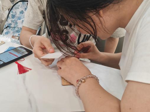 活动的最后,同学们用镊子夹起一朵朵干花,小心翼翼地放在书签上进行粘贴创作,做出独属于自己的干花书签,为本次阅读沙龙活动完美收尾,也为21天的坚持画上了句号。