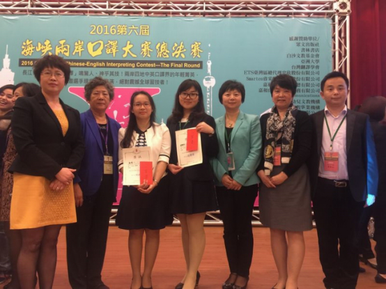 刘婧(左三)获得第六届海峡两岸口译大赛两岸总决赛一等奖