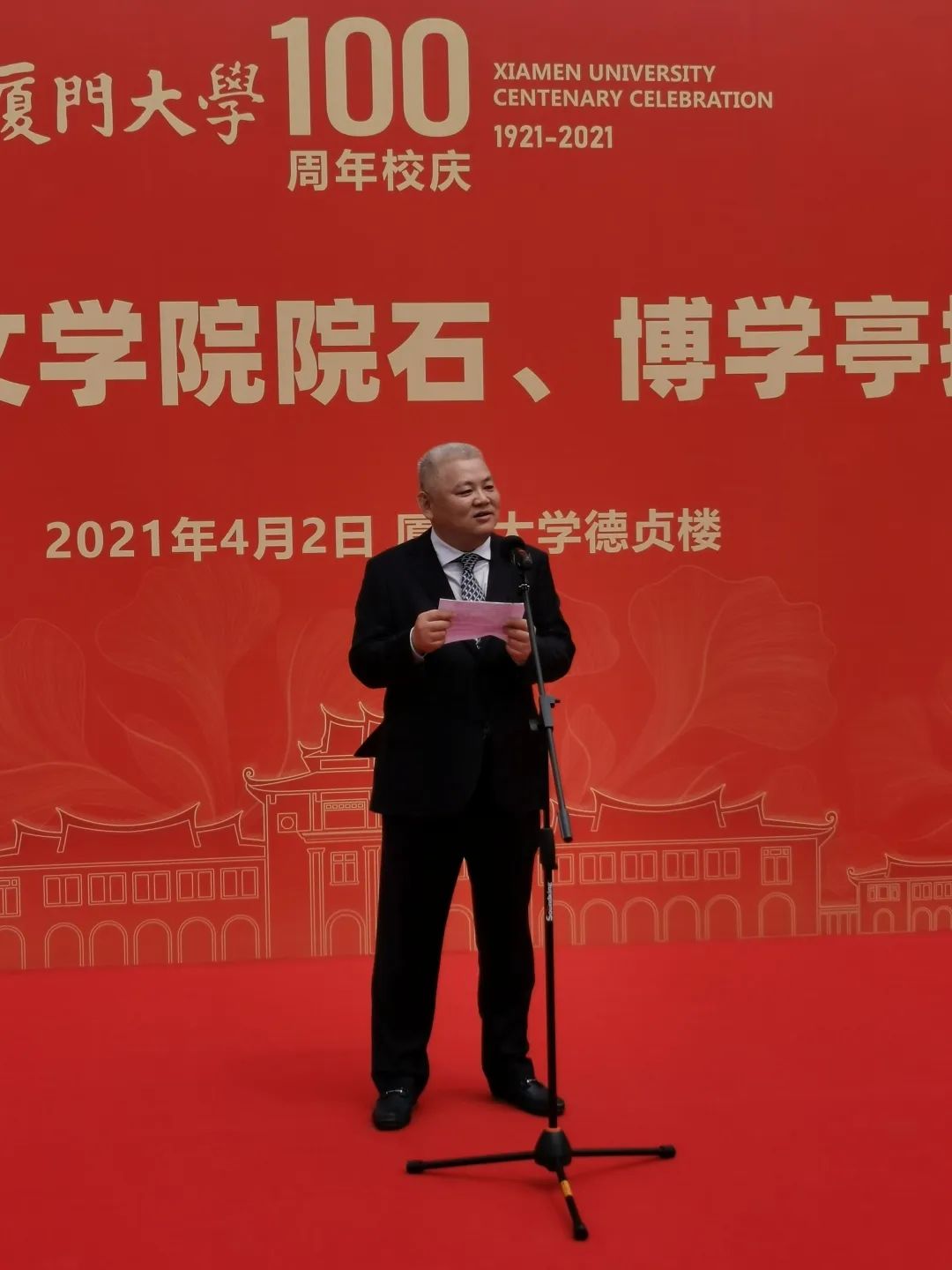 博学亭揭幕仪式上,朱群致辞
