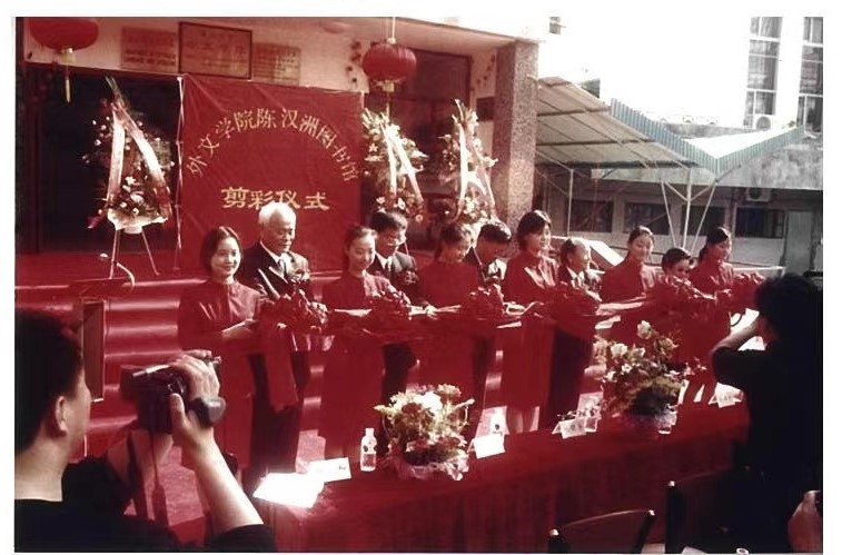 2001年4月,连淑能出席外文学院举行的陈汉洲图书馆开馆剪彩仪式。