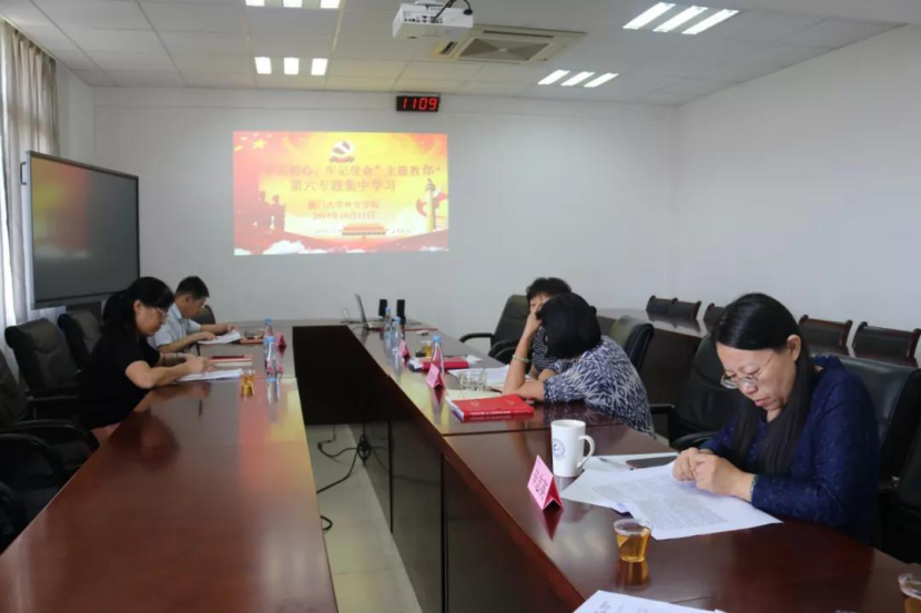 10月11日上午,外文学院党员领导干部围绕“严守政治纪律和政治规矩”开展了“不忘初心、牢记使命”主题教育集中学习研讨。会议由党委书记陈志伟主持,党委副书记杨云良、沈丽秀,党委委员、副院长徐琪、辛志英参加学习。