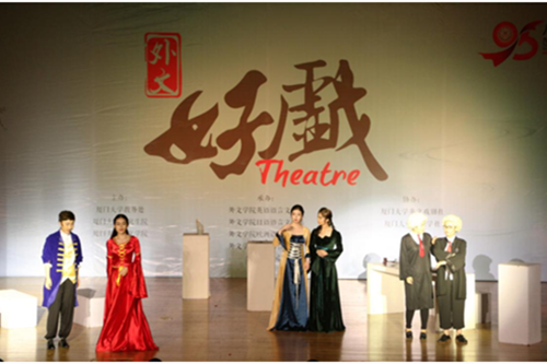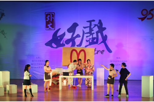 6月10日晚的科学艺术中心音乐厅灯光熠熠,热闹非凡。由厦门大学教务处、研究生院和外文学院共同主办,外文学院英语语言文学系、日语语言文学系、欧洲语言文学系、法语语言文学系及外文学院团委承办,厦门大学英文戏剧社、外文学社协办的“外文好戏”之日、德、俄专场“三国演艺”――《麦大劳的“野心”》《钦差大臣》《破瓮记》用120分钟精彩绝伦的表演为广大师生献上一场视听盛宴。 日语剧目《麦大劳的“野心”》讲述了一个山寨汉堡店与笨贼之间发生的喜剧故事。来自外文学院日语系的七名演员在老师们的悉心指导下,经过长达三个月的精心排练,将台词和表演动作熟记于心,同时和道具组和场务组的同学默契配合,感情充沛,既讽刺批判投机取巧的行为,又宣扬赞美互帮互助的精神,极具感染性,完美地将《麦大劳的“野心”》呈现给了观众。 俄语剧目《钦差大臣》演绎了“一部行走的俄国官吏病理解剖学教程”。近二十余名演职人员的精心排演为我们讲述了一则纨绔子弟在市长女儿比“武”招亲的过程中假扮钦差、引发姑娘们争风吃醋的故事。妙趣横生的故事场景,生动活泼的实力演技,不时引发台下观众的阵阵喝彩与掌声。 德语剧目《破瓮记》则是德国剧作家、富有创造力的现实主义诗人海因里希・冯・克莱斯特的代表喜剧。德语专业学生的此次演出依靠独特的剧情和大气的演绎,给观众们带来了无限的欢笑与感动。当上帝的宠儿亚当和夏娃走出伊甸园,一场因破瓮引发的有关人性的博弈精彩上演,华丽精美的服饰布景、巧妙的故事架构、激烈的情感碰撞,都令台下观众赞不绝口,回味无穷。 本次“三国演艺”专场演出由外文学院副院长徐琪教授担任总导演,此外还特别邀请人文学院中文系戏剧戏曲学博士林显源、刘颖灏两位老师分别担任总导演及舞台监制。近两个小时的演出诚意满满,演员们的精湛演技、细腻的舞台布景、精美的服装设计、炫目的灯光效果无一不让人感动和惊喜。台下的观众聚精会神,随着故事情节的发展欢笑或揪心。演出谢幕后,很多观众依旧沉浸在余韵中,久久回味,无法忘怀。经久不息的掌声就是大家对此场演出的最佳认可。 “三国演艺”作为首届“外文好戏”系列演出之一,充分展现了中外戏剧文化的交流融合,日、俄、德三种语言通过戏剧的形式散发出各自独特的魅力,激发了同学们学习外语的热情,同时也为热情浪漫的厦门大学更添一分别具一格的人文气息。